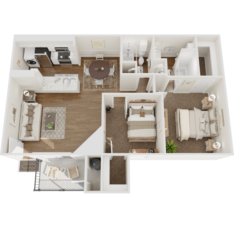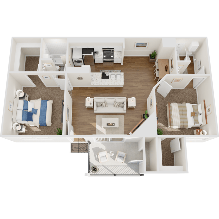 Explore our well-designed apartments for rent, where comfort and style come together. Pick from roomy one, two, or three-bedroom layouts, each with modern features like stainless steel appliances, washer and dryer connections, and quartz countertops. Relax by your own fireplace, enjoy wood vinyl flooring in the living areas, and feel the soft carpet in the bedrooms. At Whispering Winds, we focus on the details to help you feel at home.