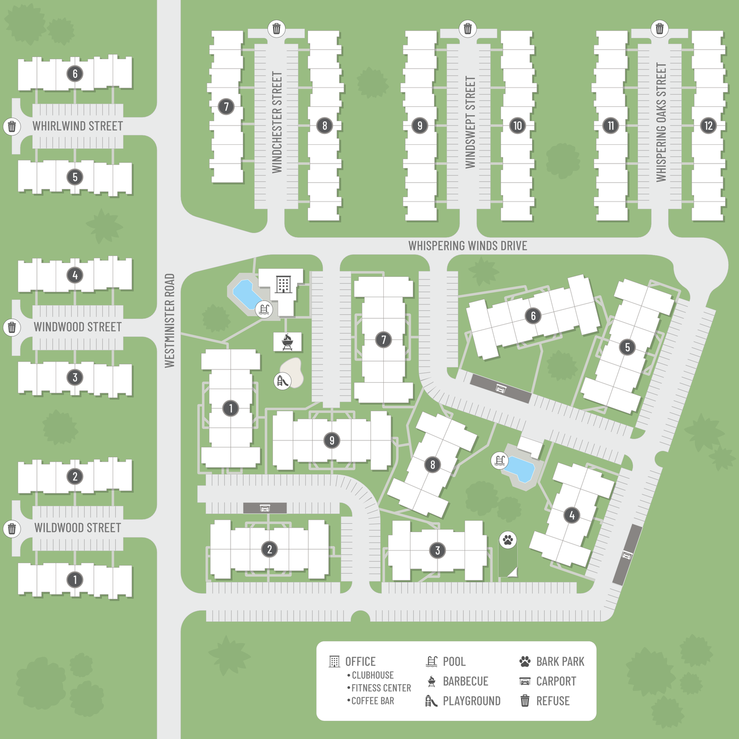 Select a floor plan or bedroom count to view those units on the overhead view on the site map. If you need assistance finding a unit in a specific location please call us at 866-811-6186 TTY: 711.